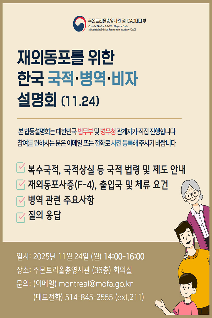 몬트리올 참전 국가 유공자회 10월 15일 가을 야유회 안내
