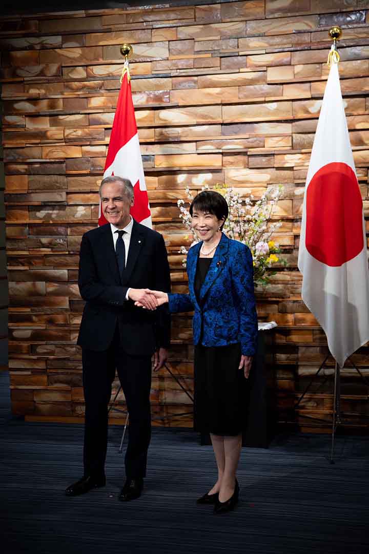 마크 카니(Mark Carney) 캐나다 총리는 6일 일본 도쿄에서 다카이치 사나에(Sanae Takaichi) 일본 총리와 정상회담을 갖고 양국 간 협력 확대 방안을 담은 전략적 파트너십 협정을 발표했다.