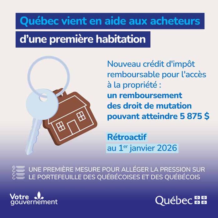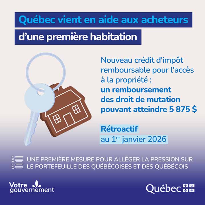 크리스틴 프레셰트(Christine Fréchette) 퀘벡주 총리는 2026년 1월 1일자로 소급 적용되는 해당 정책을 발표하고, 자격 요건을 충족하는 첫 주택 구매자에게 최대 5,875달러를 환급할 계획이라고 밝혔다.
