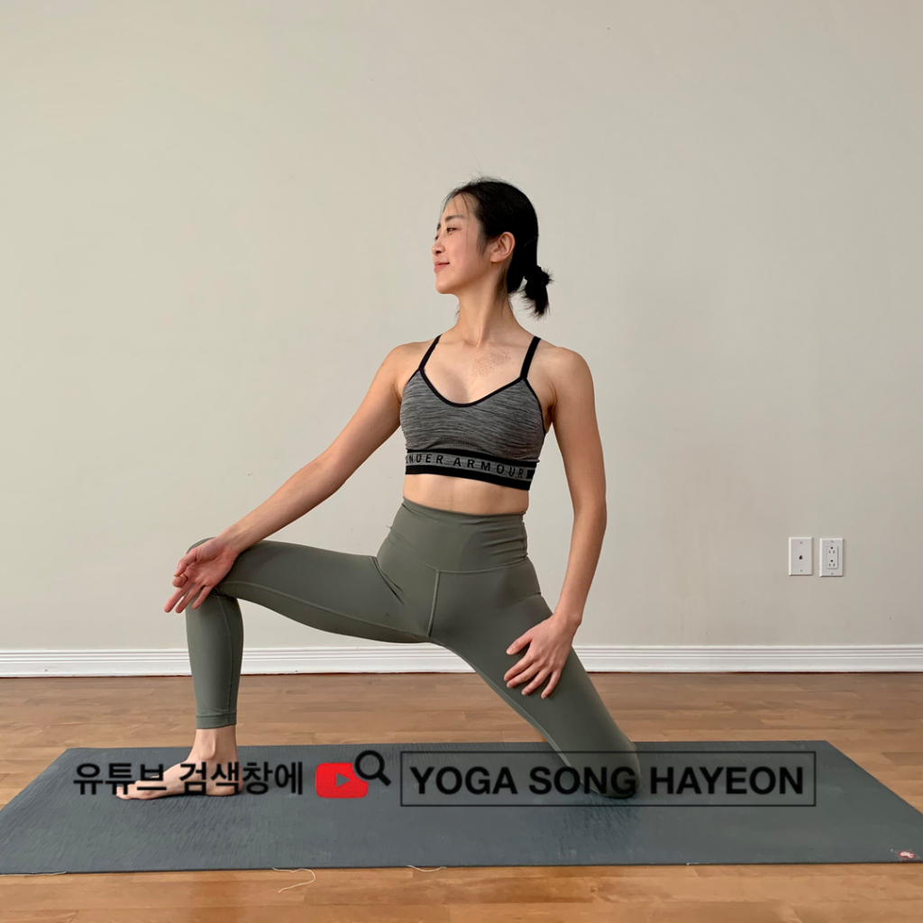 첫번째로 배울 동작은 내전근을 스트레칭해주는 워리어자세 변형 입니다.