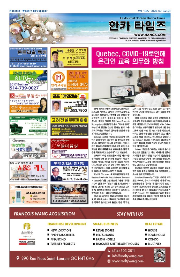 이전 글Quebec, COVID-19로 인해 학교가 문을 닫을 경우, 온라인 교육을 의무화할 방침