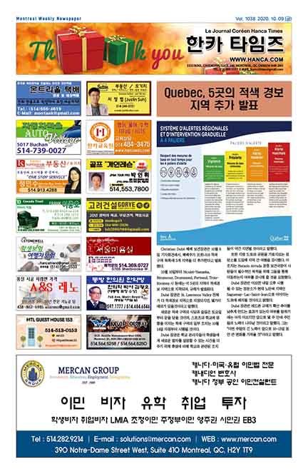 3333 Boul Cavendish Suite 300, Montreal, Quebec, H4B 2M5, Canada | TEL: 514-489-3337 | e-mail: hancatimes@gmail.com | 홈페이지에 게시된 모든 게시글은 법에 의해 보호받으며 저작권은 저자와 한카에 있습니다.