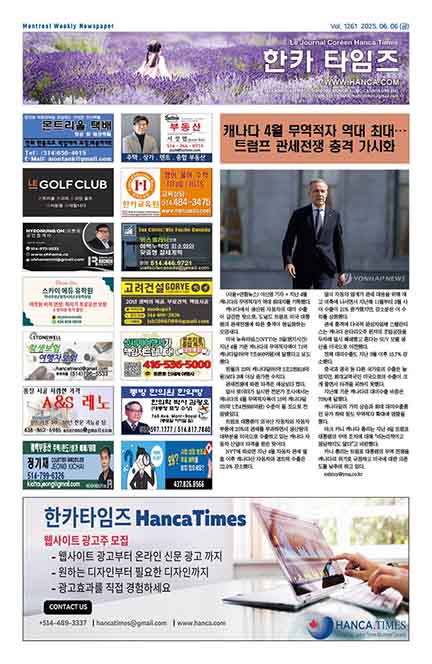 3333 Boul Cavendish Suite 300, Montreal, Quebec, H4B 2M5, Canada | TEL: 514-489-3337 | e-mail: hancatimes@gmail.com | 홈페이지에 게시된 모든 게시글은 법에 의해 보호받으며 저작권은 저자와 한카에 있습니다.