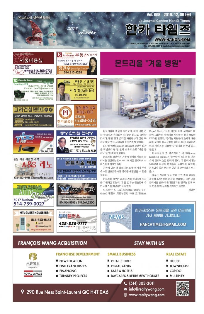 3333 Boul Cavendish Suite 300, Montreal, Quebec, H4B 2M5, Canada | TEL: 514-489-3337 | e-mail: hancatimes@gmail.com | 홈페이지에 게시된 모든 게시글은 법에 의해 보호받으며 저작권은 저자와 한카에 있습니다.